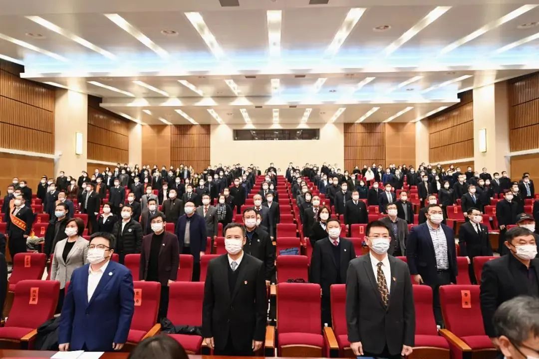 △会议开场,全体起立,奏唱国歌