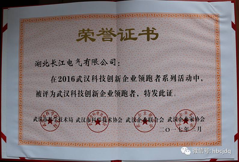 3月31日,2016年武汉科技创新企业领跑者系列活动举行颁奖典礼,长江电气被评为“武汉科技创新企业领跑者”,公司董事长王新城荣获“武汉科技创新领跑企业家”。