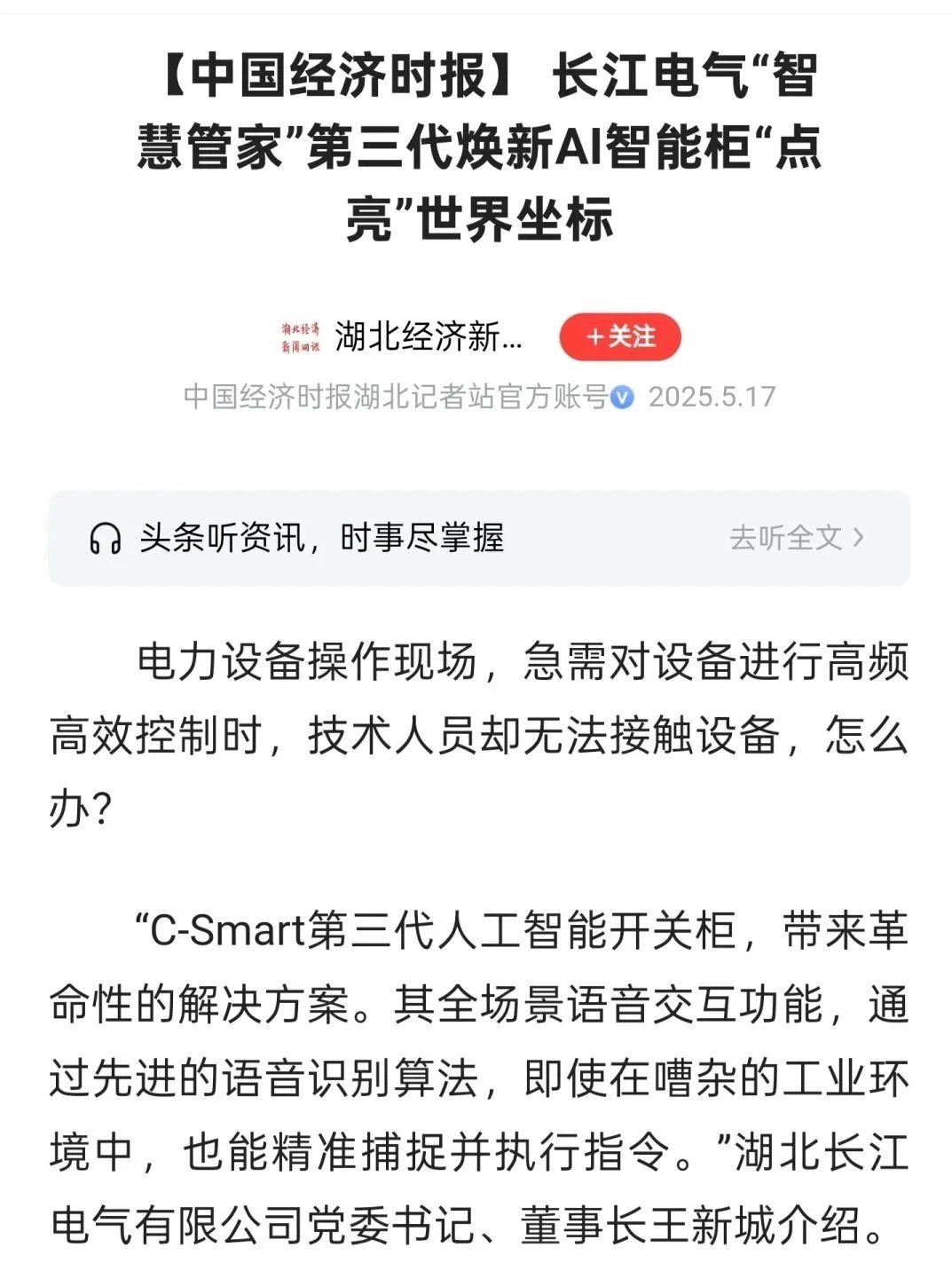 媒体聚焦|C-Smart第三代人工智能开关柜重磅发布获多家媒体关注