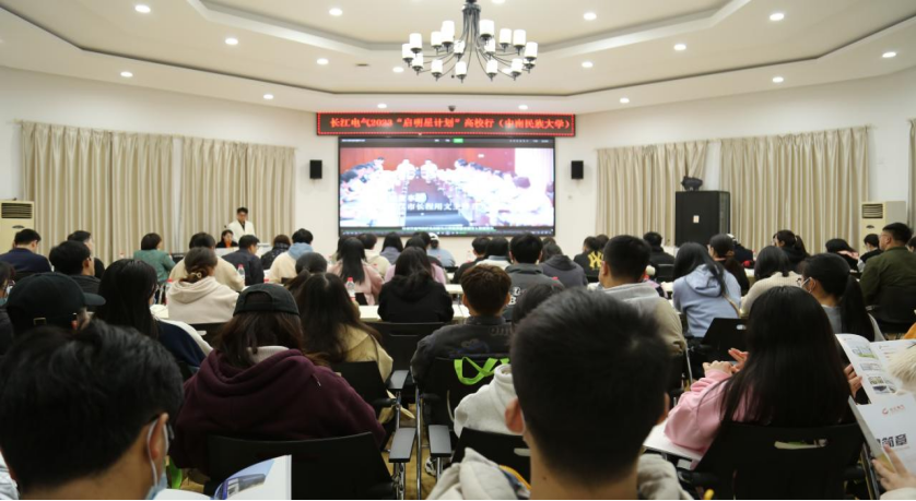 3月25日下午,长江电气“越青春 越来电”2023年“启明星计划”高校行走进中南民族大学,公司专场招聘宣讲会火爆开场!