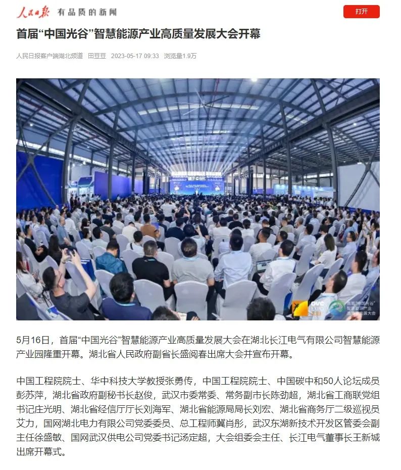 大会的成功召开,在社会各界引起广泛关注,国家、省、市等主流媒体高度聚集报道,人民日报、央视、光明日报、经济日报、中国经济时报、湖北省人民政府网、湖北日报、长江日报、武汉广播电视台等数十家央地媒体,从不同维度、不同视角,聚焦大会重点、热点。湖北省经信厅、湖北省工商联、中国光谷、武汉产业创新发展研究院等官方平台,也转发报道,助力智慧能源产业高质量发展。
