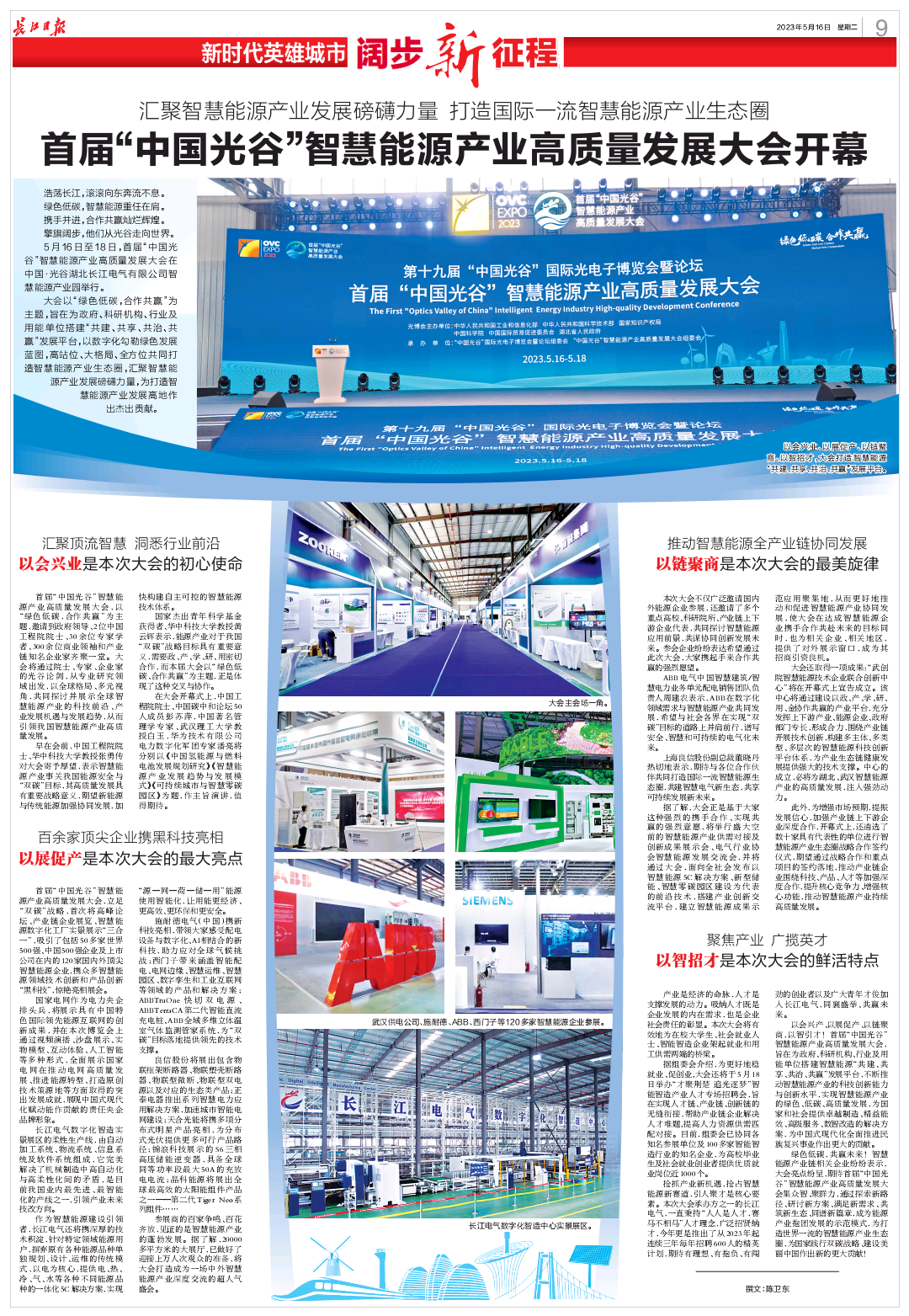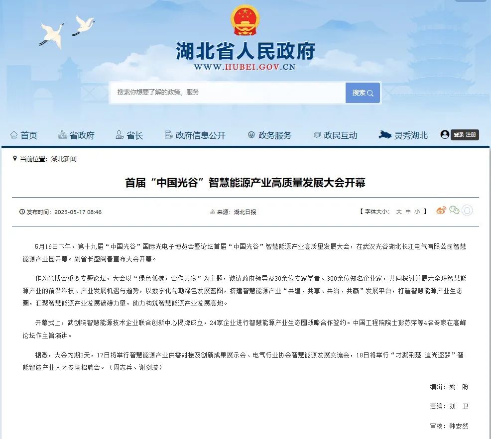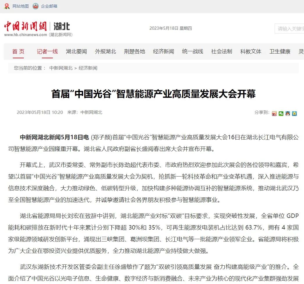 5月16日至18日,首届“中国光谷”智慧能源产业高质量发展大会成功举办,盛况空前,湖北省人民政府副省长盛阅春出席大会并宣布开幕。